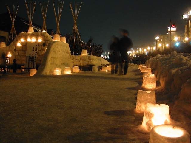 最終日だったので、解けかかって役目が終わるのをじっと待っているふうな雪のオブジェもありました。滅びの美学か、また来年、、という感じで会場を後にしました。