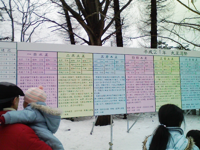 掲示されていた「九星運勢」によれば、今年も自分はぱっとしないようですが、目標に向かって努力あるのみ。