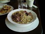 僕が食べたイカ、タコのペペロンチーノ(950円)は、パスタの茹で具合にちょっと感動。ピリッと辛いスープと一緒にイカ、タコをほおばるうちに冷たいビールが飲みたくなったけど、運転手なのでぐっと我慢。この日は他に、明太子のスパゲッティ(920円)、ソーセイジとコーンのピッツァ(880円)などいただきました。パスタやピッツァのほかに、スープ、リゾット、魚や肉の単品料理、デザートなどメニューも豊富。コースメニュー(Aコース:2800円、B コース:4500円)もあるそうです。