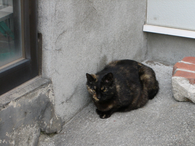 だいたい、いつもここでくつろいでいる。 家の玄関の軒先。 近付くと睨みをきかせて来やがる。 居心地のいい所を邪魔されたくないのだろうな。