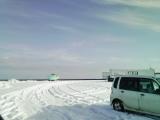 うーむ、予想以上に荒れていて近づける状態ではなかった。駐車場に車を入れると海水をかぶってしまいそうなので、入り口の高い位置から眺めるだけで終了。