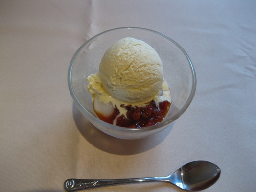 友達が食べたローズヒップのぜんざい(500円)はあんこ嫌いのあなたでも大丈夫。あんこの代わりにローズヒップのジャムのようなものがあんの代わりです。更にそれに添えられているアイスクリームは多分ここでしか味わえないでしょう、これまたハーブ(タラゴン)のアイスです。とっても口の中に広がる甘さは不思議な味。(でも自分はココナツアイスだと思っていました。ははは)