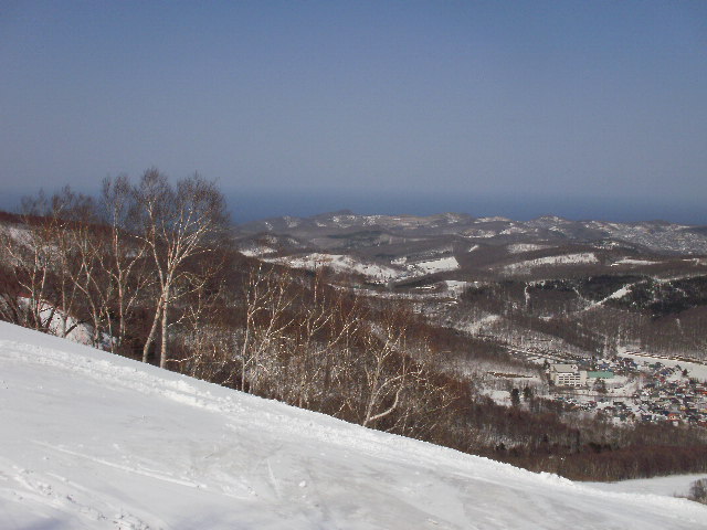 It was a sunny Sunday on the 4th. There was a lot of snow left, and some people were enjoying final skiing of the season in the skiing ground. I wonder if there is any other skiing ground in the world other than Mt. Tengu from where you can enjoy a magnificent panoramic view of the sea over the built-up areas.