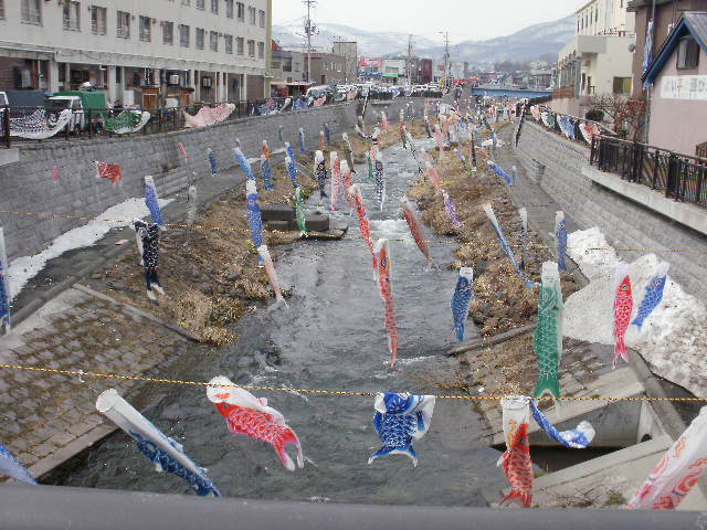 In Otaru, a lot of Koinobori are put up over the River Katsunai every year, and they attract people’s attention as a charming sights of spring.