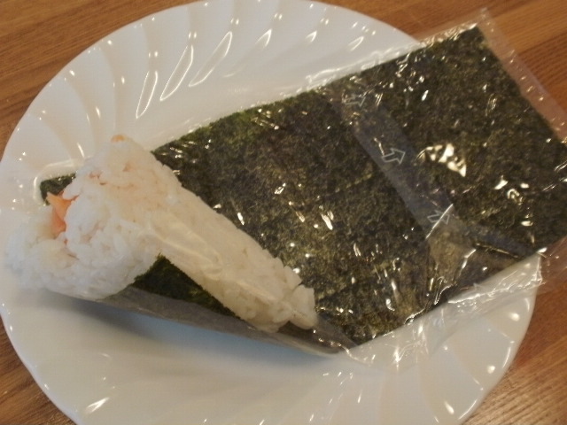 At the supermarkets and convenience stores, you can find sushi wrapped with plastic wrap called Temaki-zushi(hand-rolled sushi).