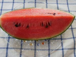 The watermelon contains a lot of juice, and I think well-cooled watermelon is much effective than ice cream when it is very hot, and you are thirsty.