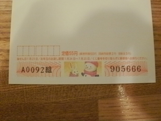 On the message side, a rabbit that is the next year's oriental zodiac animal is depicted, and on the other side that the recipient's address and name should be written, you can see the lottery numbers.
