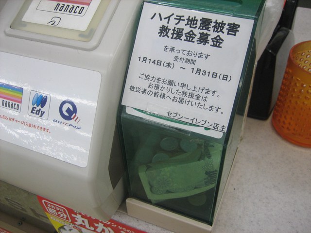 セブンイレブンでは今月末まで募金を行っているらしい。